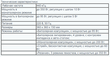 Набор электродов в зависимости от специализации врача (в виде игл разной толщины, петли, ромба, треугольника, шара, пинцета)